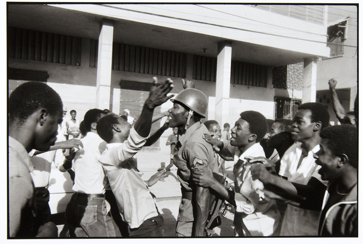 The Shake of a Man in Fever presents photographs from the museum’s permanent collection of U.S. photographer Danny Lyon’s series “Merci Gonaïves” (1986). This series spans Lyon’s time in Haiti (1983-1986) from his initial role as a brothel photographer to his observation of Haiti’s February Revolution. The exhibition highlights the interplay of routine daily life with revolution and the different versions of life in Haiti at that moment. While Lyon was shooting “Merci Gonaïves” Haiti was in the midst of the February Revolution. Lyon expresses his support by referencing Gonaïves, the village in northern Haiti where manifestations began. He recounts: