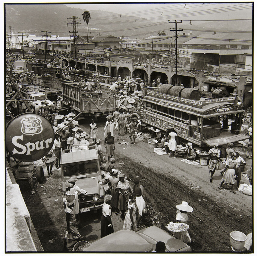 Haiti was convalescing from the reign of terror of dictator Jean-Claude “Baby Doc” Duvalier, self-proclaimed president for life, who ruled Haiti for fifteen years (1971-1986) with secret police known as the Tonton Macoute. In Merci Gonaïves” Lyon sought a “true” Haiti. One in which a young girl counting coins in the market and women planting a field coexist with the conflict: an injured man in a hotel bed, a Tonton Macoute intimidating a crowd. Lyon intended “Merci Gonaïves” to challenge mainstream depictions of the Haitian Revolution in the U.S.; coverage which Lyon claimed took a “single style”. Rather he presents a visually complex and multivalent portrait of a country in the throes of revolution. Blending idealized daily scenes with hectic action shots undercuts the simplistic view of Haiti, but it is once again the country viewed through a U.S. lens.