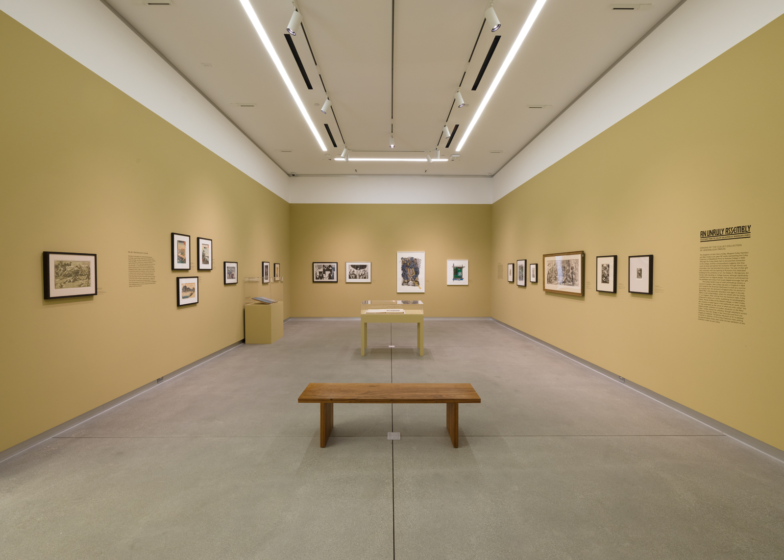 An Unruly Assembly begins with a selection of historical woodcuts from the Benton’s collection that trace the evolution of the technique from its origins as a utilitarian means of mass communication—particularly in late medieval to Renaissance German art and book publishing—to its development as a fine art form. Early examples by such pillars of art history as Hans Burgkmair, Albrecht Dürer, Hiroshige, and Peter Paul Rubens provide important context for understanding the modern works on view.