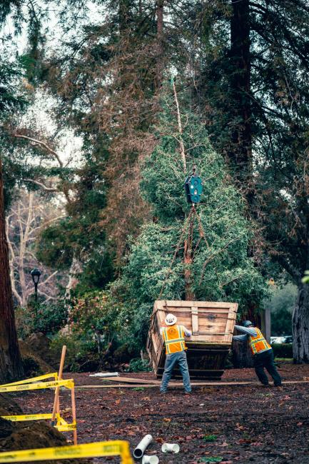 A severe windstorm downed trees along Stover Walk in 2022. Pomona’s grounds crew planted new trees in January 2023 to reforest the campus.