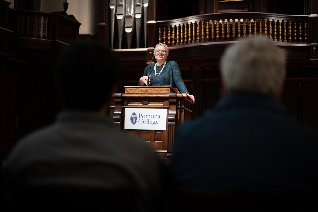 President G. Gabrielle Starr kicked off Pomona’s annual Founders Day Celebration on October 15 with a State of the College Address inside Little Bridges Auditorium. Scores of students, staff, faculty and College administrators then mingled on Marston Quad over lunch as the Draper Center accepted donations from the Sagehen community.