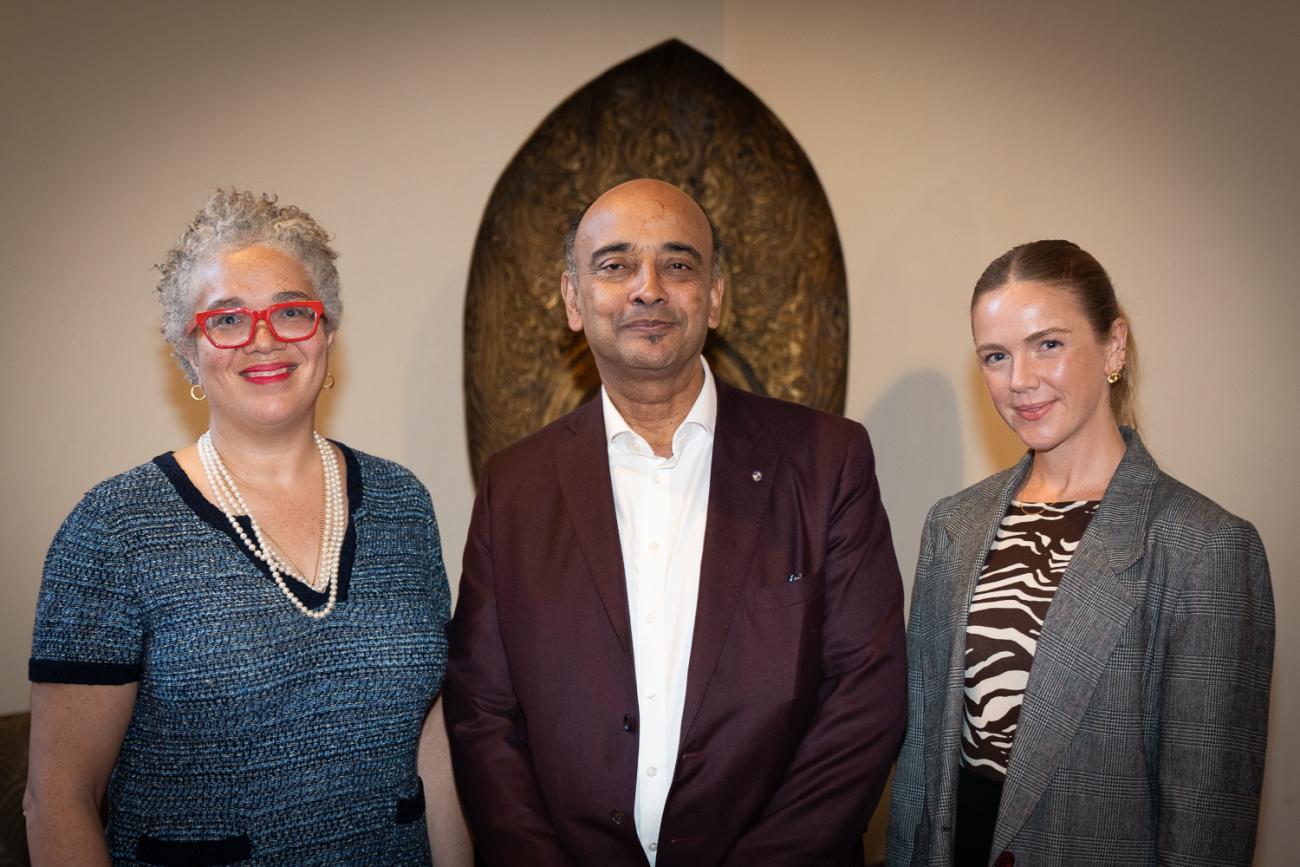 Pomona President G. Gabrielle Starr, from left, Kwame Anthony Appiah and Prof. Ellie Anderson at the Payton Distinguished Lectureship.